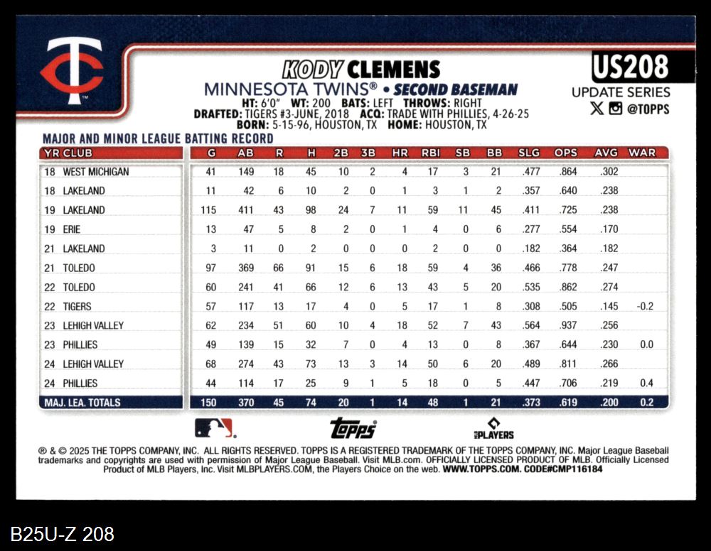 2025 Topps Update #208 Kody Clemens 8 - NM/MT
