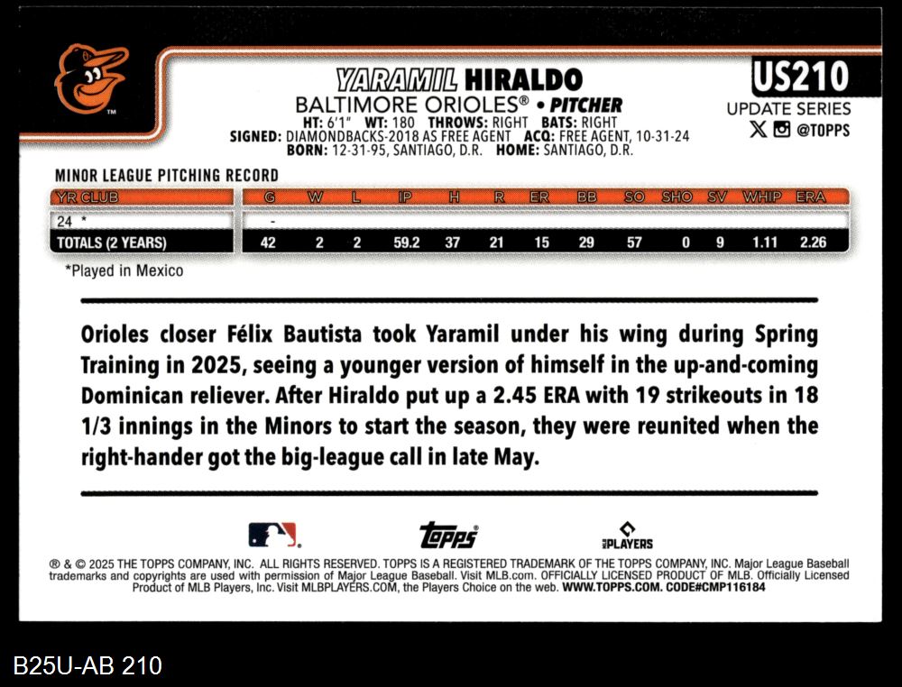 2025 Topps Update #210 Yaramil Hiraldo