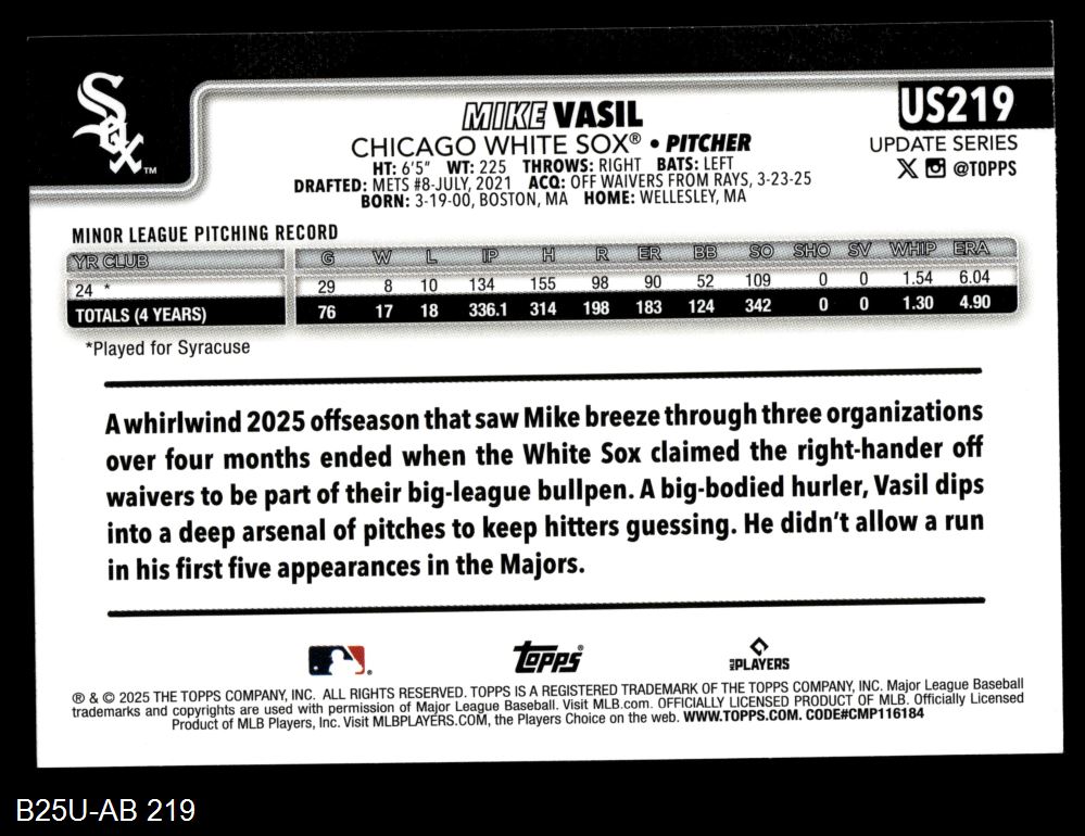 2025 Topps Update Baseball Cards (892 available)2025 Topps Update White Sox (11 available)
