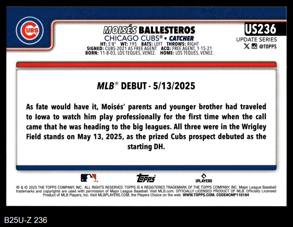 2025 Topps Update #236 - Moises Ballesteros Rookie Debut 8 - NM/MT