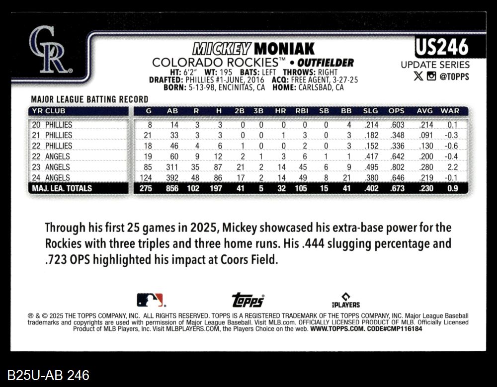 2025 Topps Update #246 Mickey Moniak