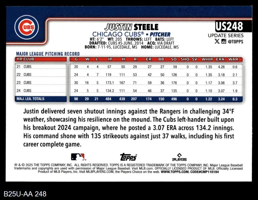 2025 Topps Update #248 Justin Steele