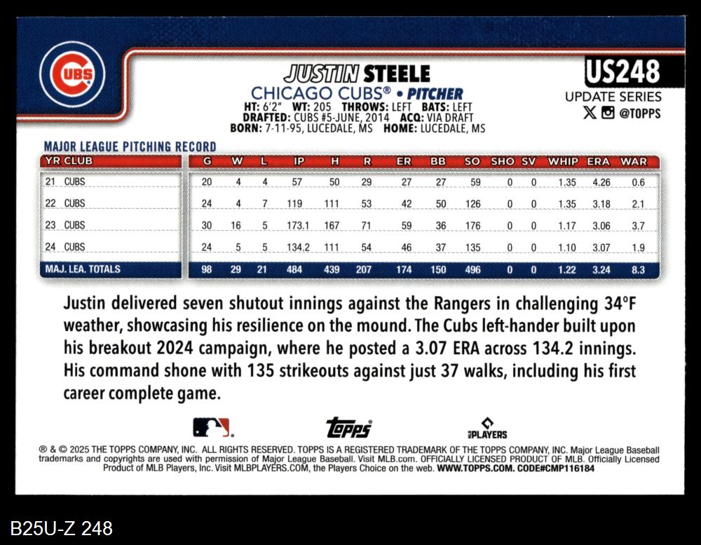 2025 Topps Update #248 Justin Steele 8 - NM/MT