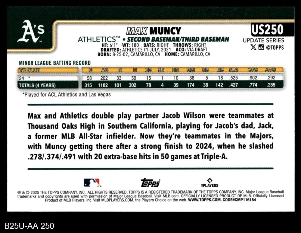 2025 Topps Update Athletics