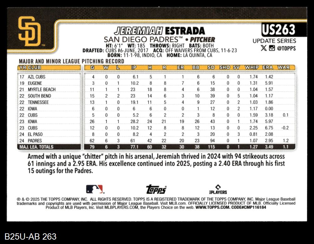 2025 Topps Update #263 Jeremiah Estrada