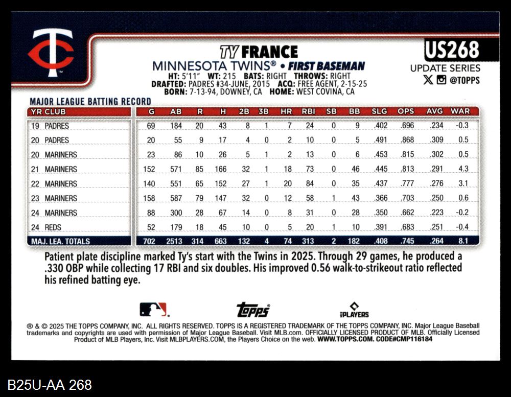 2025 Topps Update #268 Ty France