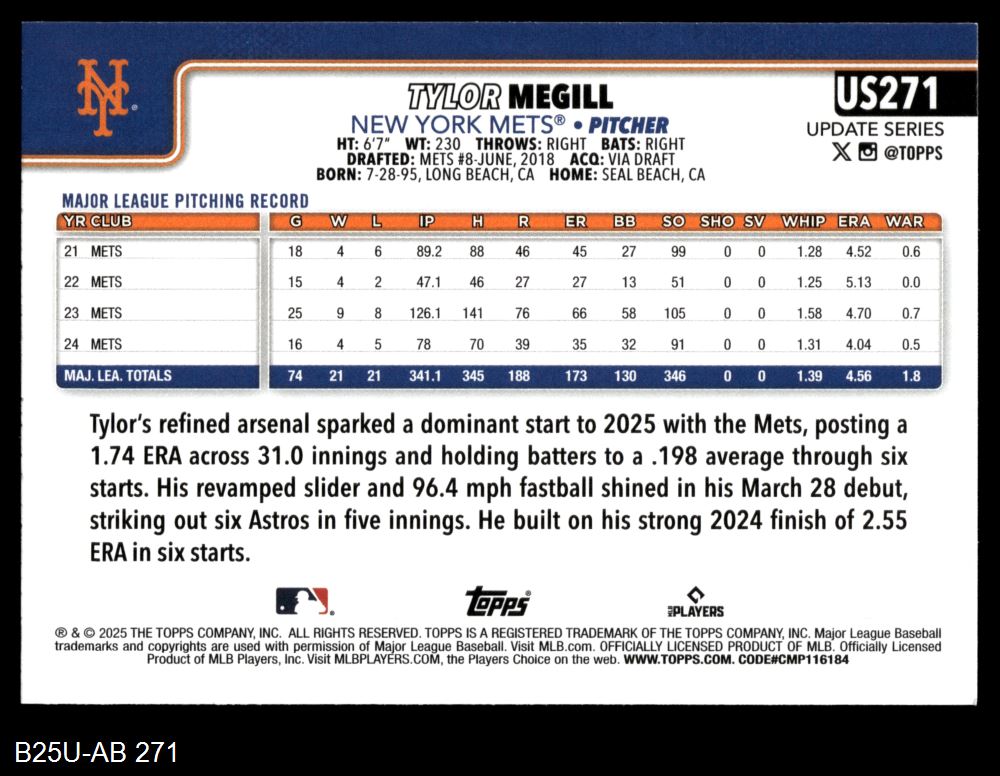 2025 Topps Update #271 Tylor Megill