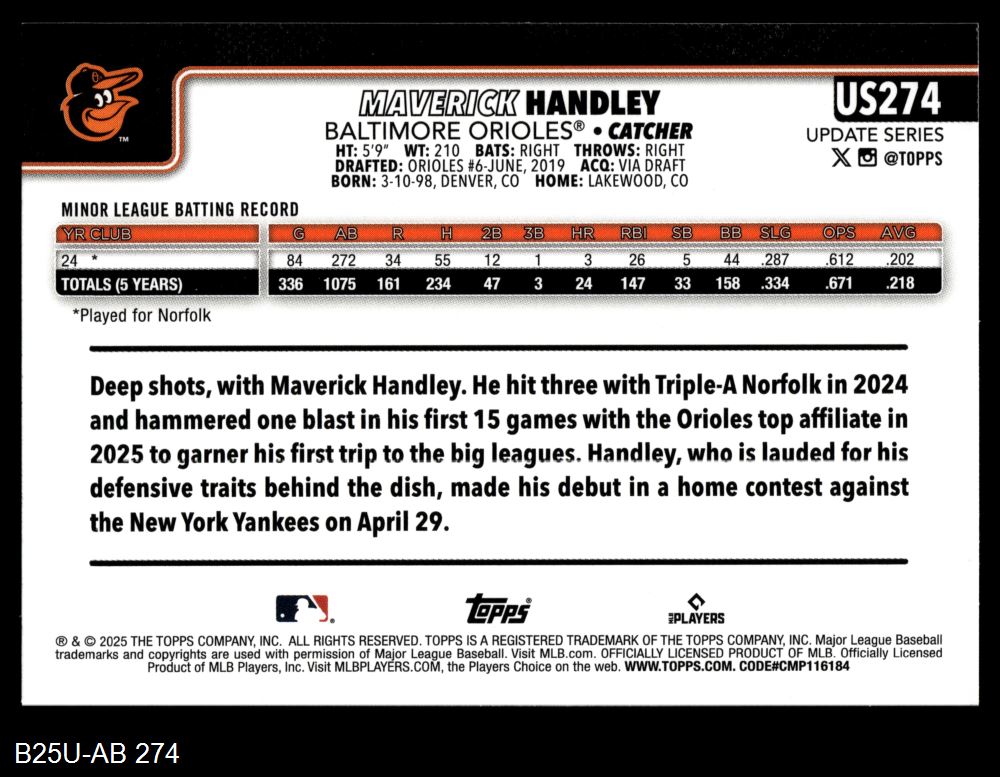 2025 Topps Update #274 Maverick Handley