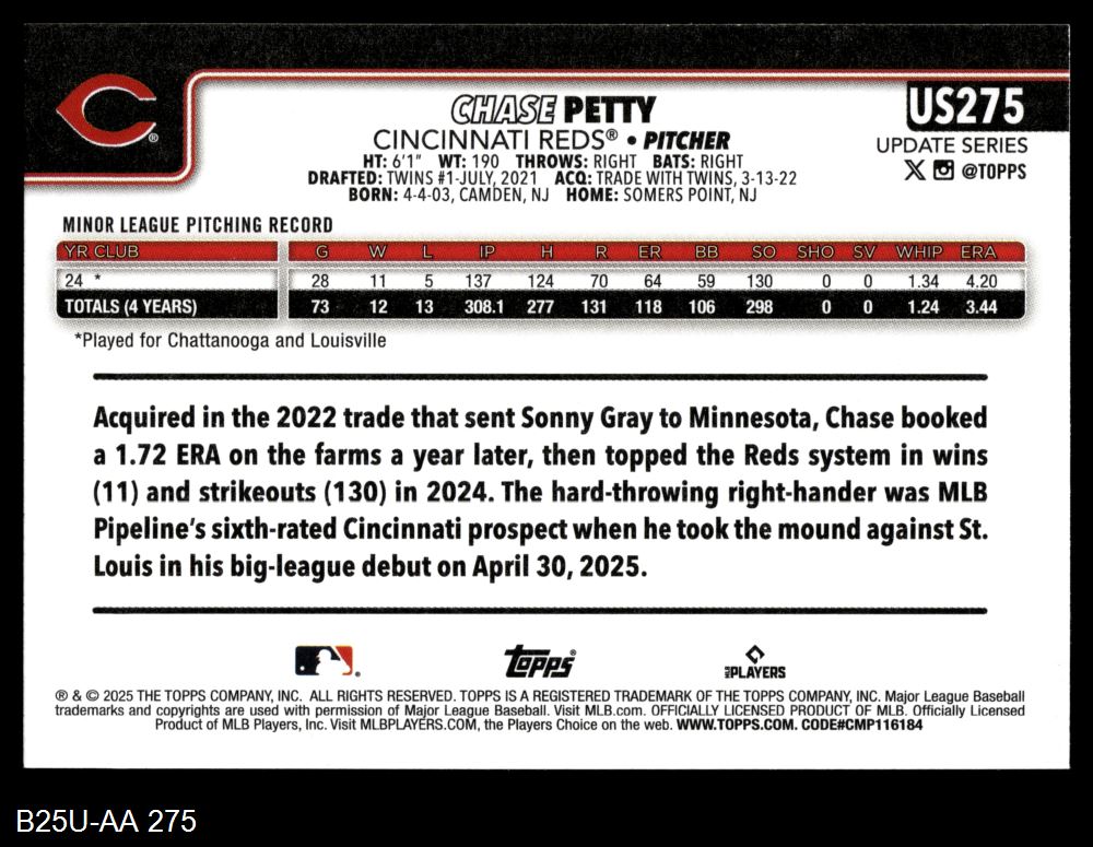 2025 Topps Update #275 Chase Petty 8 - NM/MT