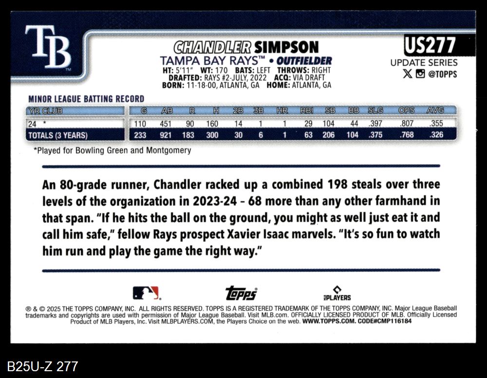 2025 Topps Update #277 Chandler Simpson 8 - NM/MT