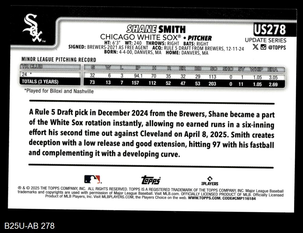 2025 Topps Update #278 Shane Smith
