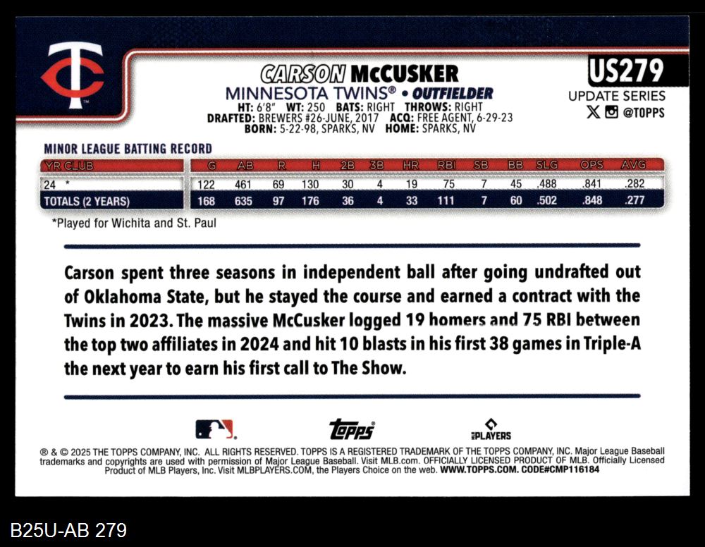 2025 Topps Update #279 Carson McCusker