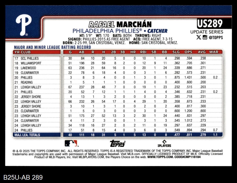2025 Topps Update #289 Rafael Marchan 8 - NM/MT