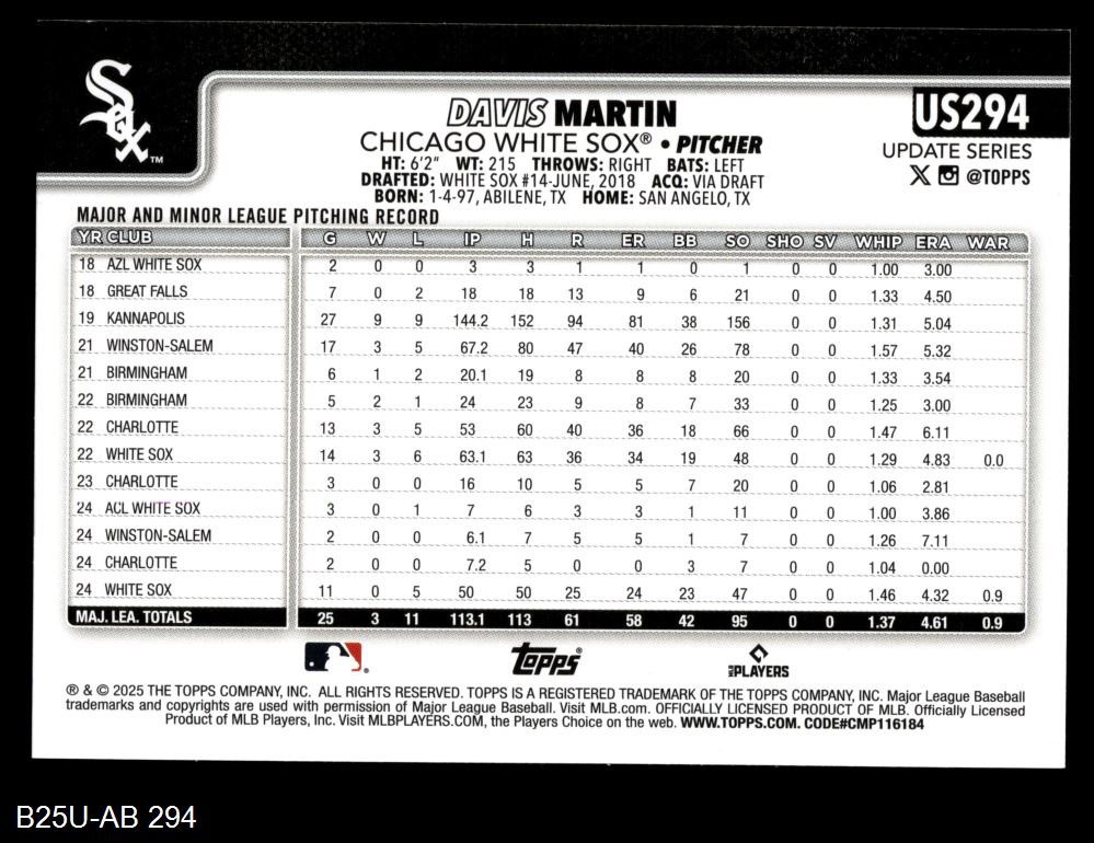 2025 Topps Update #294 Davis Martin 8 - NM/MT