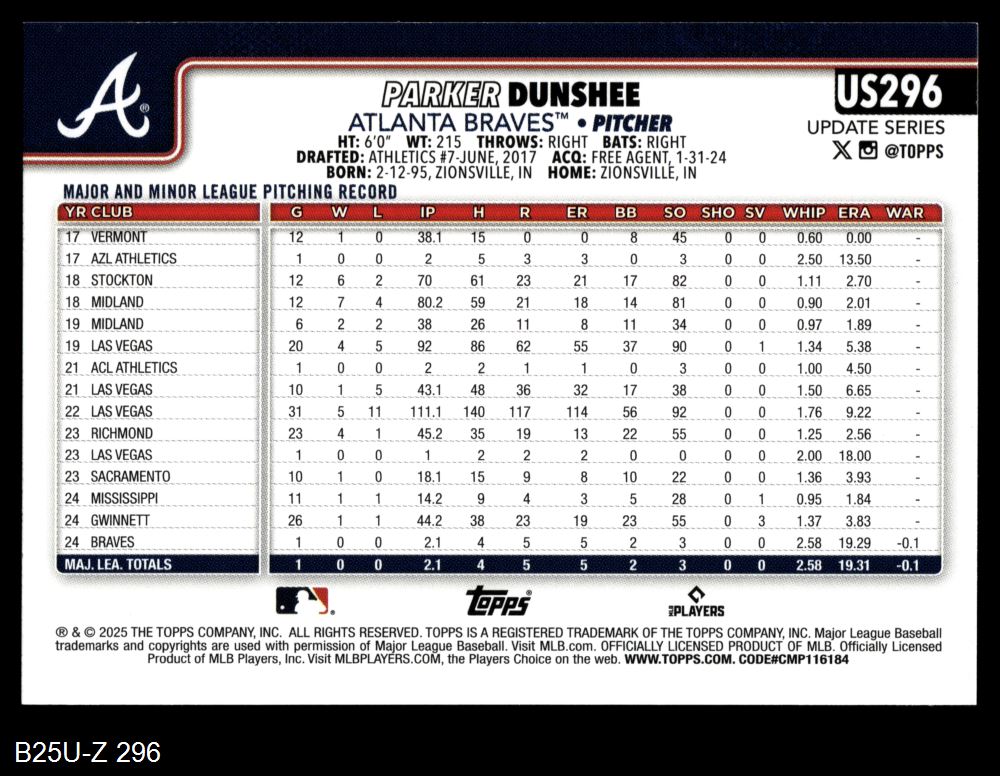 2025 Topps Update #296 Parker Dunshee 8 - NM/MT