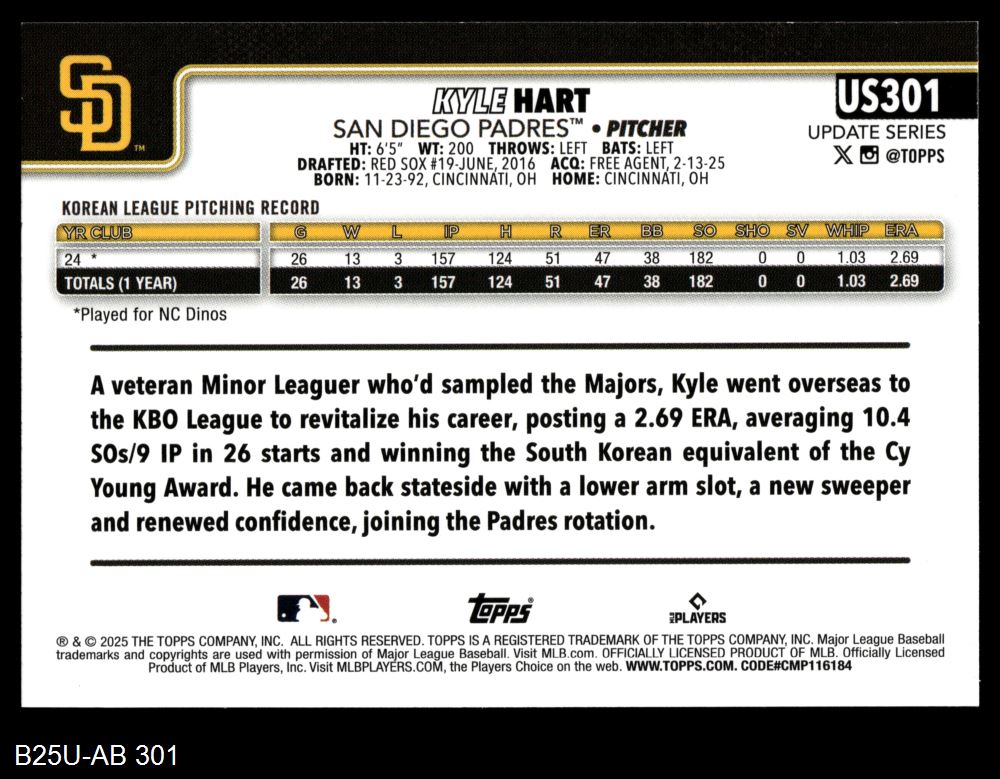 2025 Topps Update #301 Kyle Hart