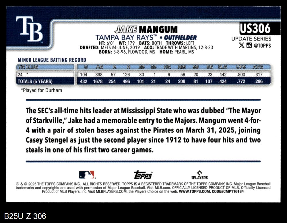 2025 Topps Update #306 Jake Mangum 8 - NM/MT