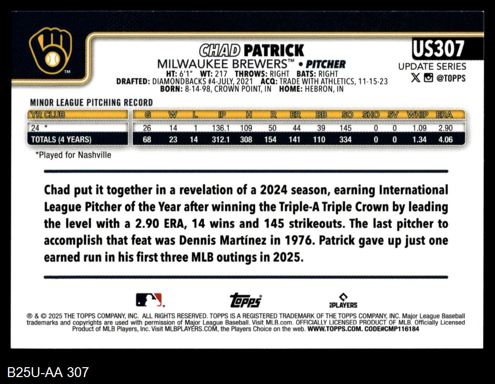 2025 Topps Update #307 Chad Patrick