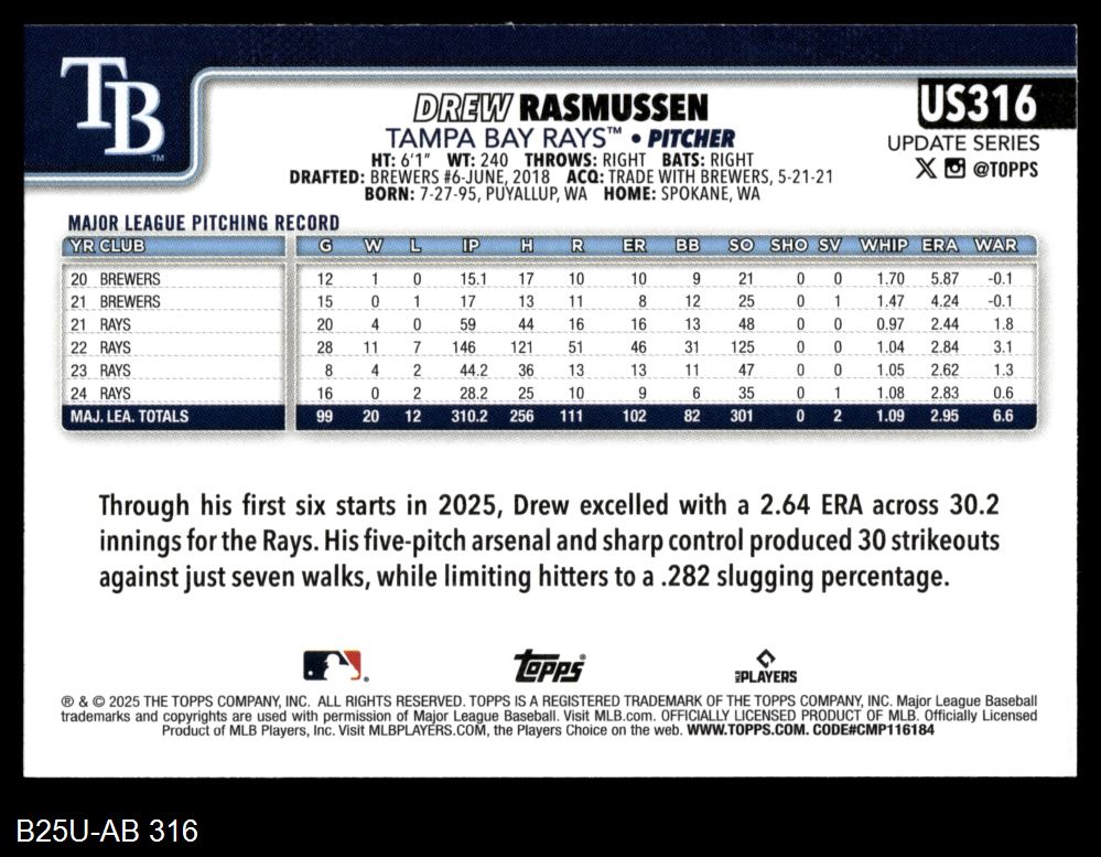 2025 Topps Update #316 Drew Rasmussen 8 - NM/MT