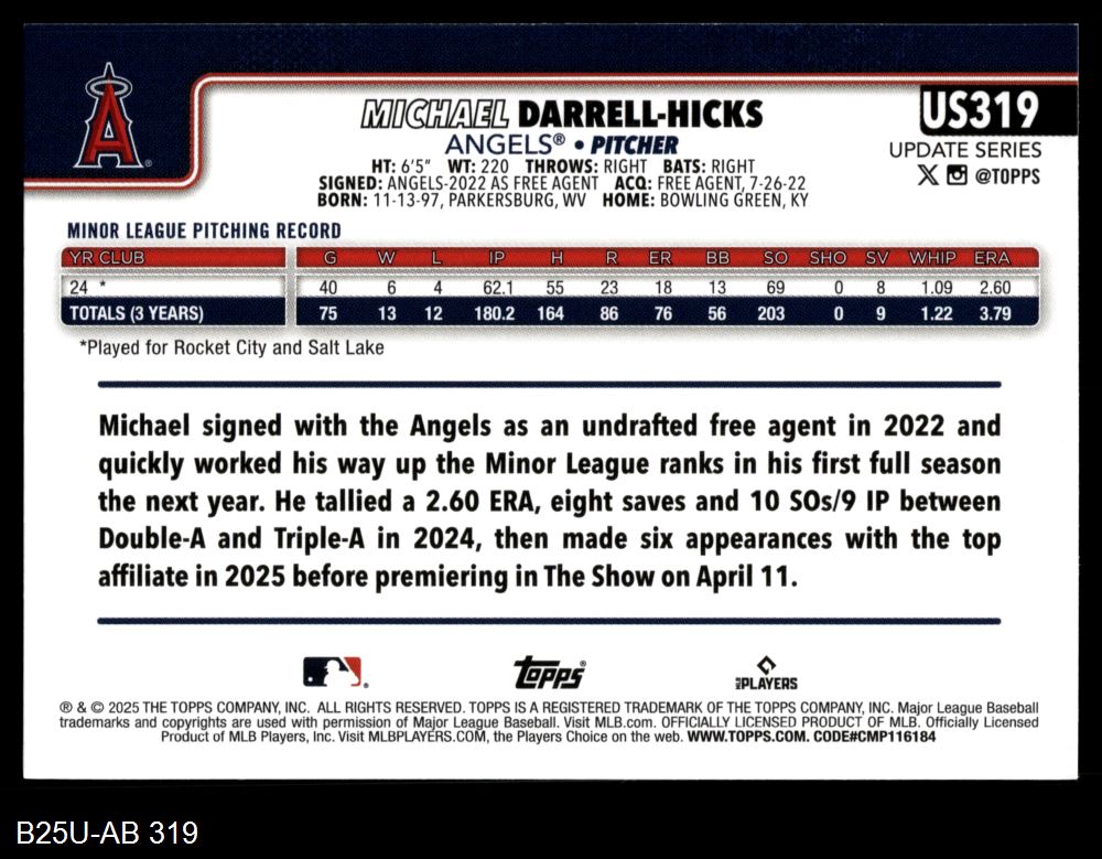 2025 Topps Update #319 Michael Darrell-Hicks
