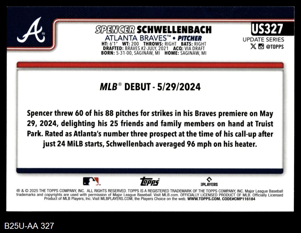 2025 Topps Update #327 - Spencer Schwellenbach Rookie Debut 8 - NM/MT