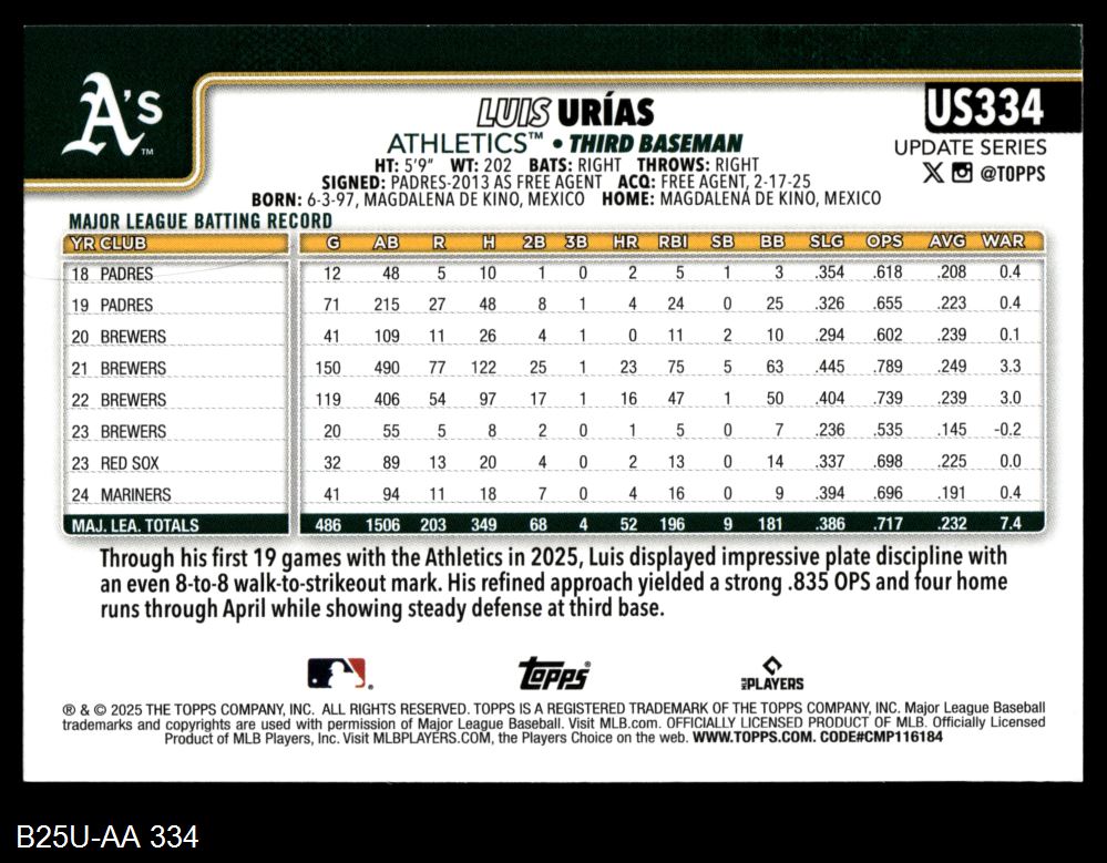 2025 Topps Update #334 Luis Urias 8 - NM/MT