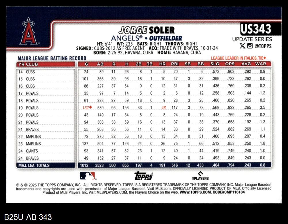 2025 Topps Update #343 Jorge Soler