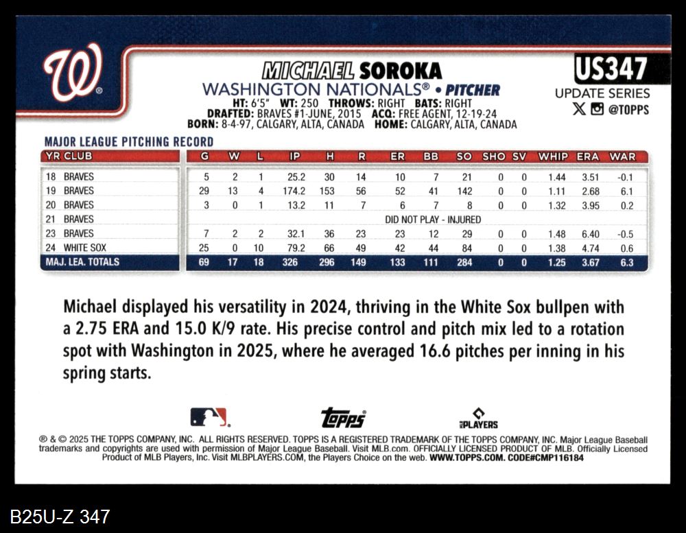 2025 Topps Update #347 Michael Soroka