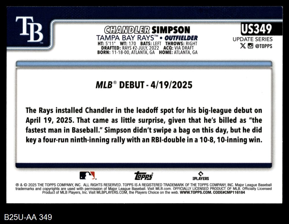 2025 Topps Update Rays