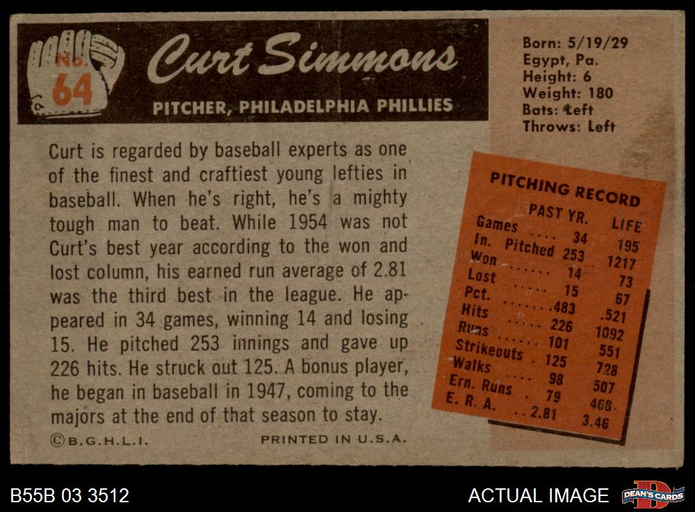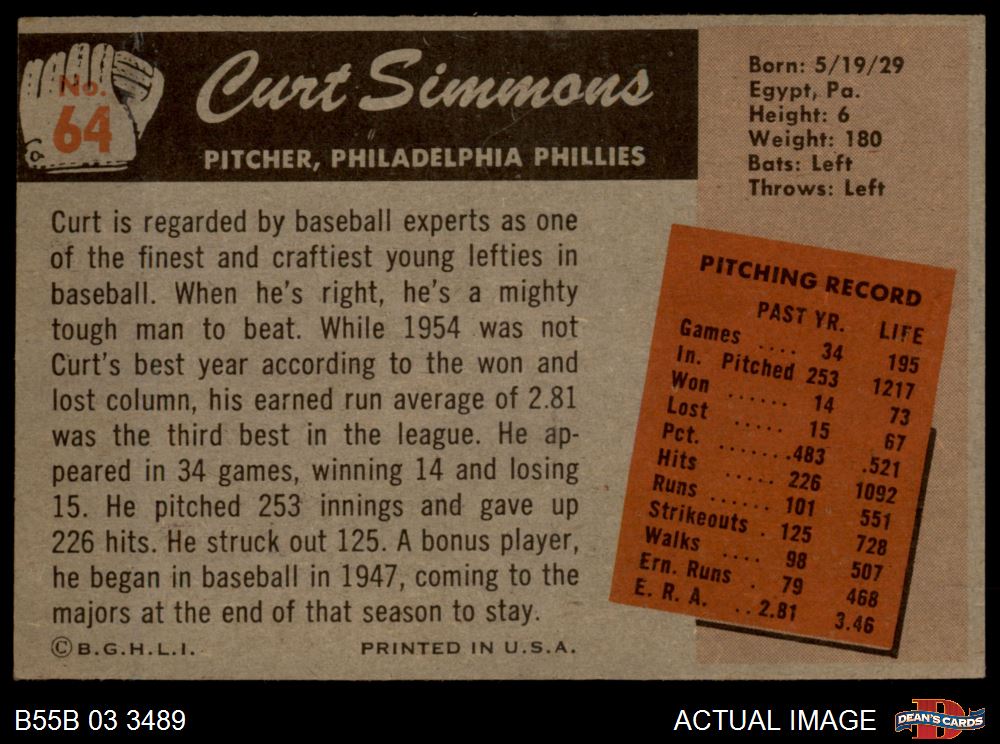 1955 Bowman #64 Curt Simmons 4 - VG/EX