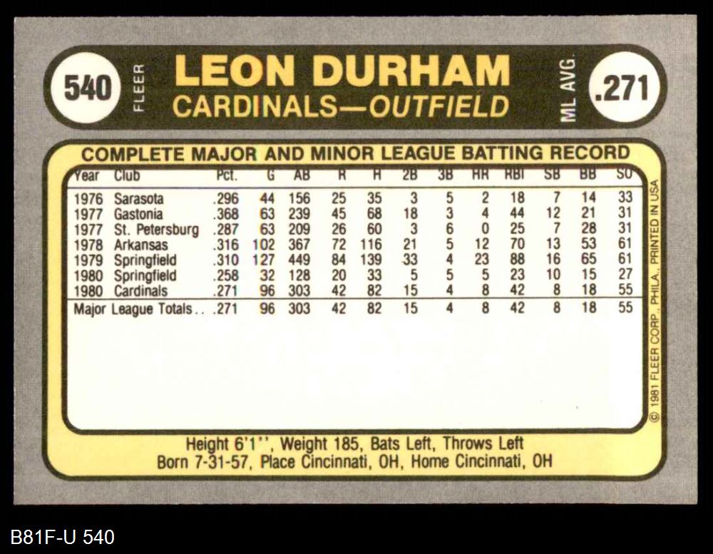 1981 Fleer #540 Leon Durham