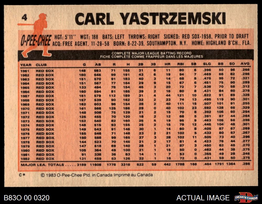 1983 O-Pee-Chee #4 Carl Yastrzemski 8 - NM/MT