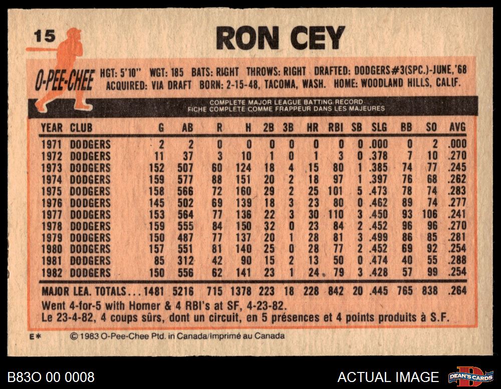 1983 O-Pee-Chee #15 Ron Cey