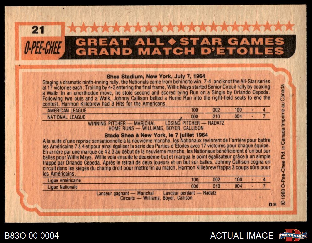 1983 O-Pee-Chee #21 All-Star