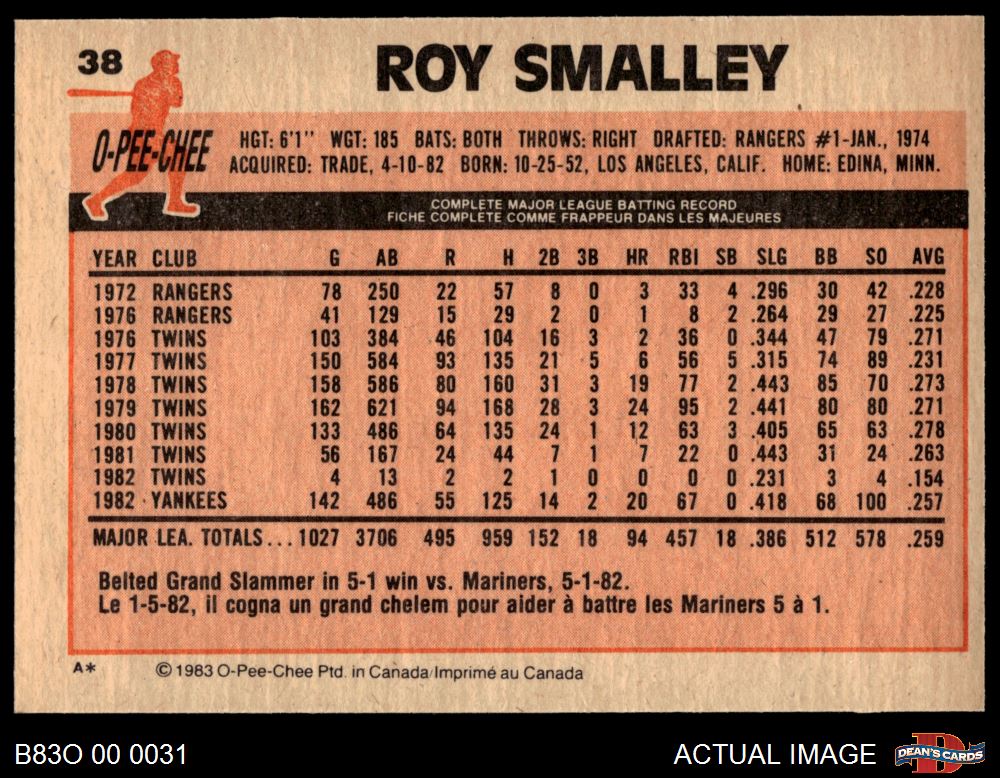 1983 O-Pee-Chee #38 Roy Smalley 8 - NM/MT