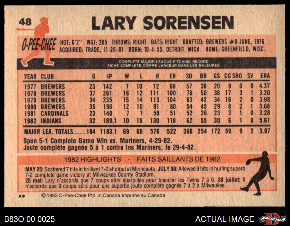 1983 O-Pee-Chee #48 Lary Sorensen 8 - NM/MT