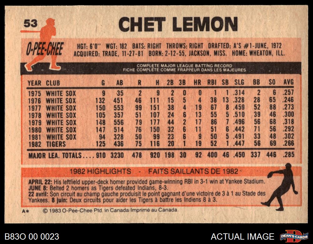 1983 O-Pee-Chee #53 Chet Lemon