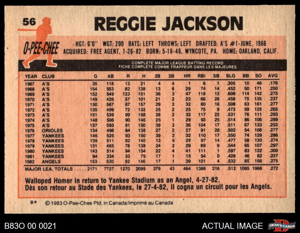 1983 O-Pee-Chee #56 Reggie Jackson 8 - NM/MT