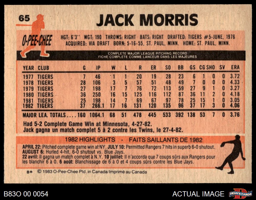 1983 O-Pee-Chee #65 Jack Morris