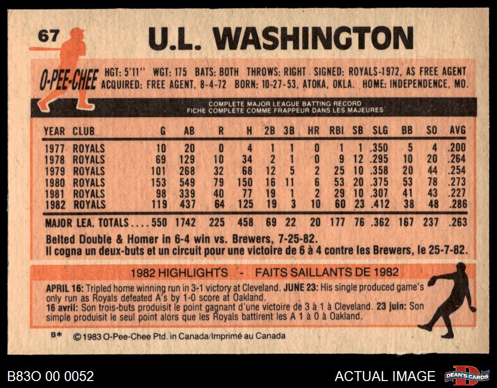 1983 O-Pee-Chee #67 U.L. Washington