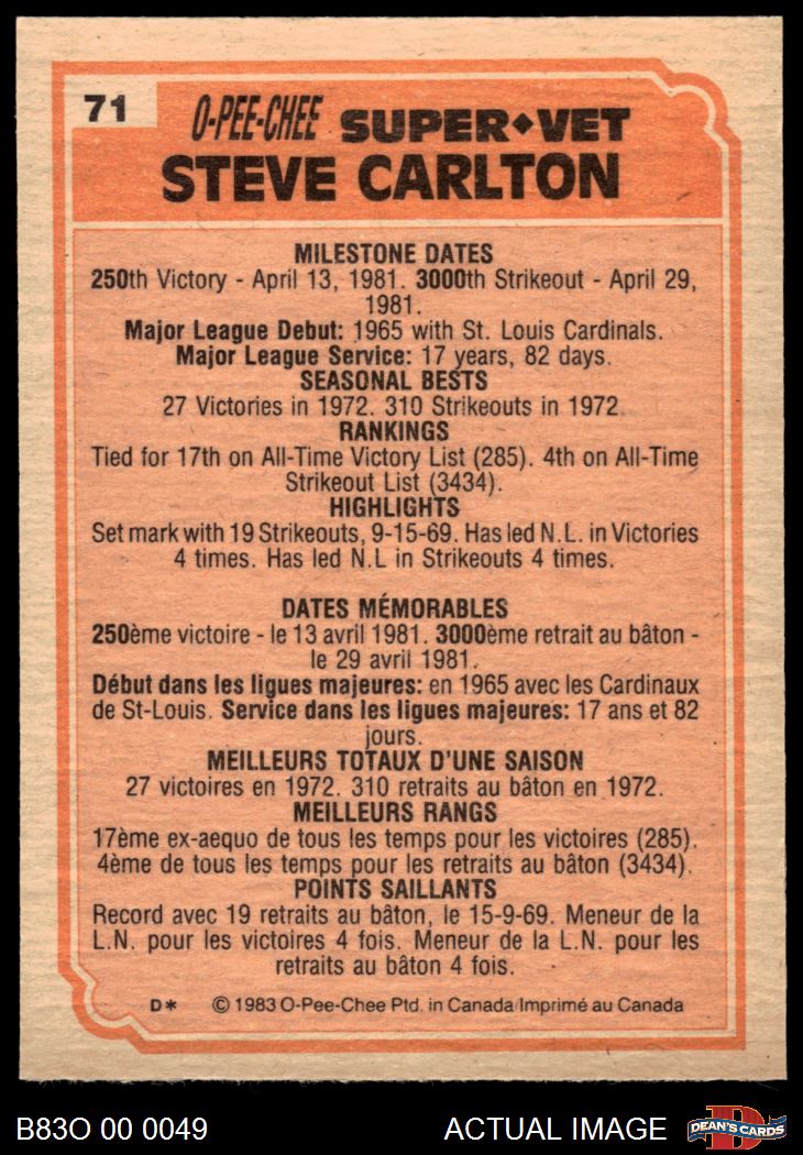 1983 O-Pee-Chee #71 - Steve Carlton Super Veteran 8 - NM/MT