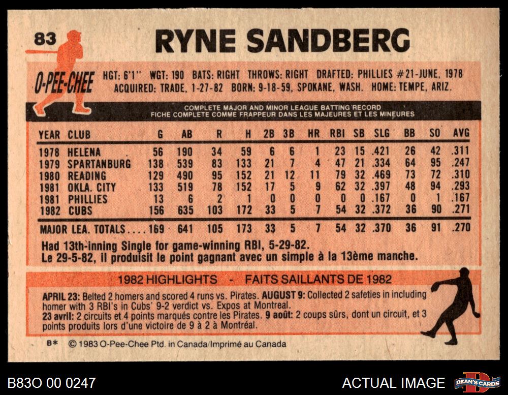 1983 O-Pee-Chee #83 Ryne Sandberg 8 - NM/MT