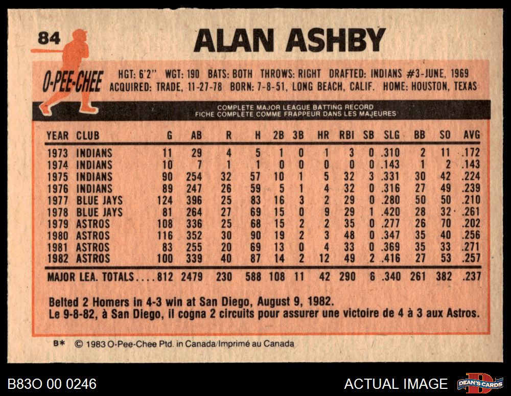 1983 O-Pee-Chee #84 Alan Ashby