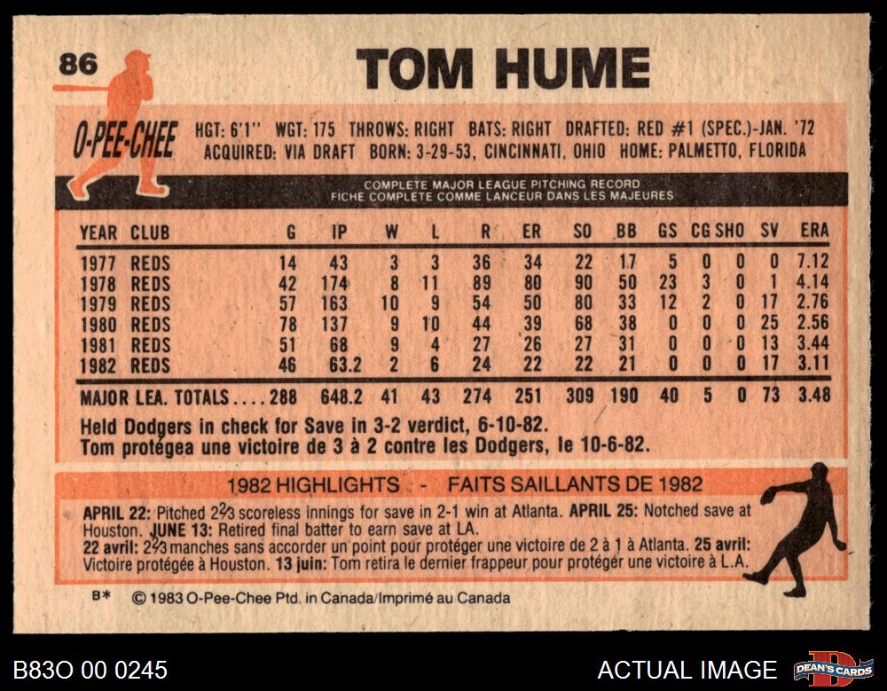 1983 O-Pee-Chee #86 Tom Hume