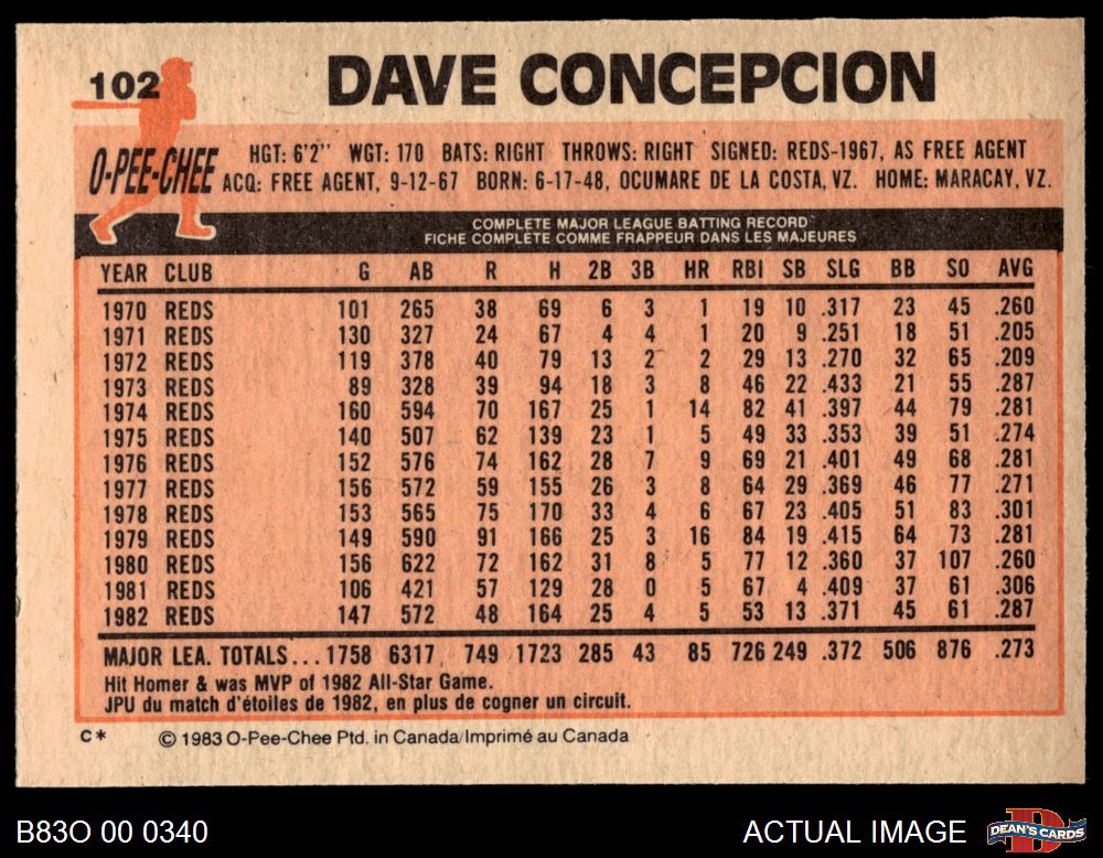 1983 O-Pee-Chee #102 Dave Concepcion