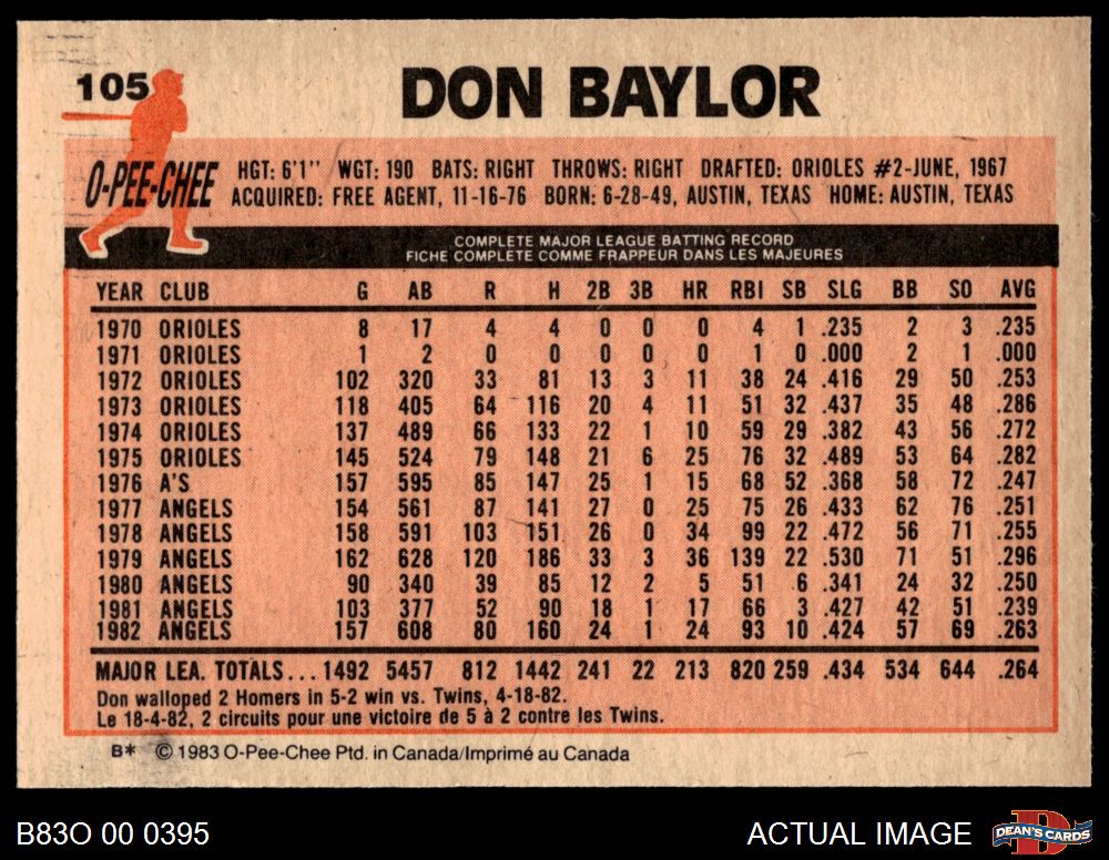 1983 O-Pee-Chee #105 Don Baylor 4.5 - VG/EX+