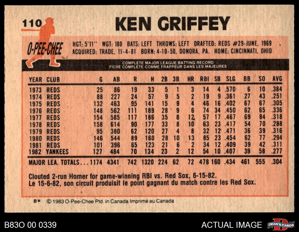 1983 O-Pee-Chee #110 Ken Griffey 8 - NM/MT