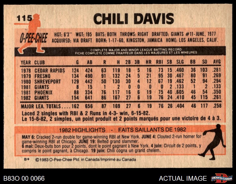 1983 O-Pee-Chee #115 Chili Davis 8 - NM/MT