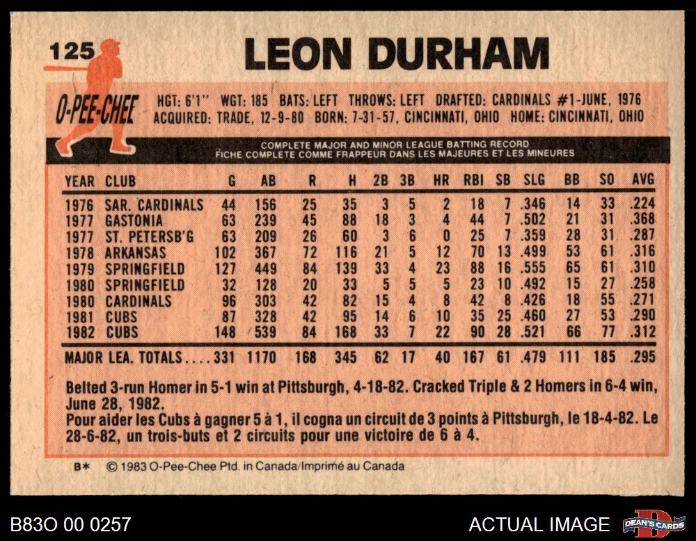 1983 O-Pee-Chee #125 Leon Durham 8 - NM/MT