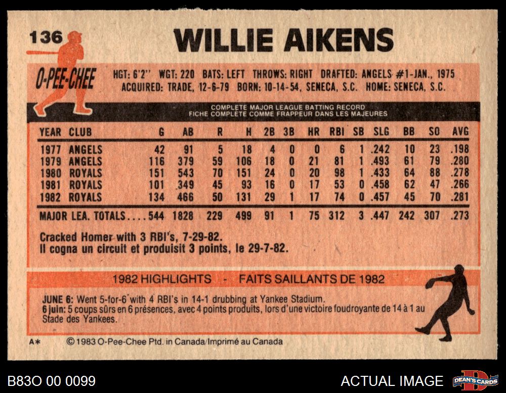1983 O-Pee-Chee #136 Willie Aikens 8 - NM/MT